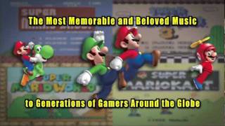 Titles: Super Mario Bros.™ Ground Background Music * Super Mario Bros.™ Underground Background Music * Super Mario Bros.™ Underwater Background Music * Super Mario Bros.™ Castle Background Music * Super Mario Bros.™ Invincible Background Music * Super Mario Bros.™: The Lost Levels Ending * Super Mario Bros.™ 3 Map 1 * Super Mario Bros.™ 3 Ground Background Music * Super Mario Bros.™ 3 Boss of the Fortress * Super Mario Bros.™ 3 Skyship Background Music * Super Mario World™ Title * Super Mario World™ Castle Background Music * Dr. Mario™ Chill * Dr. Mario™ Title Background Music * Super Mario Kart™ Mario Circuit * Super Mario World™ 2 Yoshi's Island™ Athletic * Super Mario World™ 2 Yoshi's Island™ Ground Background Music * Super Mario 64™ Main Theme * Super Mario 64™ Water Land * Mario Kart™ 64 Circuit * Super Mario Sunshine™ Dolpic Town * New Super Mario Bros.™ Title * New Super Mario Bros.™ Giant Background Music * New Super Mario Bros.™ Battle Background Music 2 * New Super Mario Bros.™ Battle Background Music 1 * Super Mario Galaxy™ Ending Staff Credit Roll * Mario Kart™ Wii™ Rainbow Road * New Super Mario Bros.™ Wii™ Ground Background Music * New Super Mario Bros.™ Wii™ Underwater Background Music * New Super Mario Bros.™ Wii™ Desert Background Music * Super Mario Bros.™ Time Up Warning Fanfare * Super Mario Bros.™ Course Clear Fanfare * Super Mario Bros.™ World Clear Fanfare * Super Mario Bros.™ Power Down, Game Over.