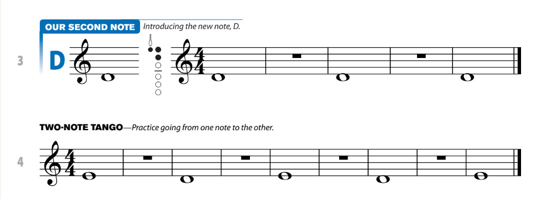 Clean and uncluttered page layouts as well as solid pedagogy will help your students have better understanding of the materials. Each new note is introduced with a diagram of the fingering, eliminating the need to reference a separate page. Note names are not included inside the note heads in order to fast-track musical literacy and the starting pitch is concert D for easy ranges and fingerings.